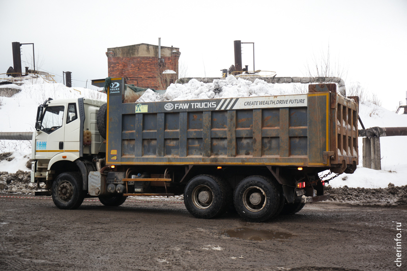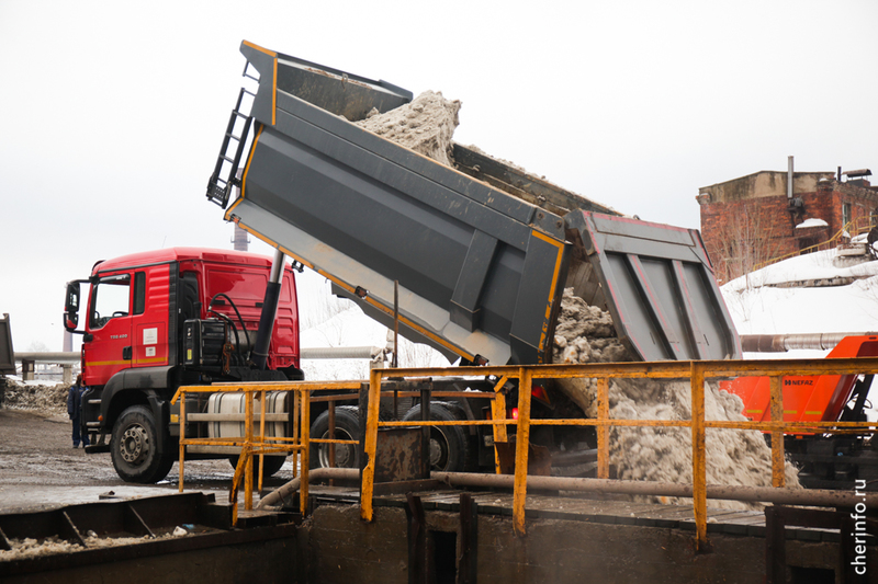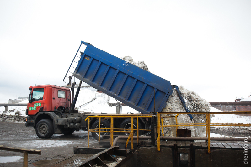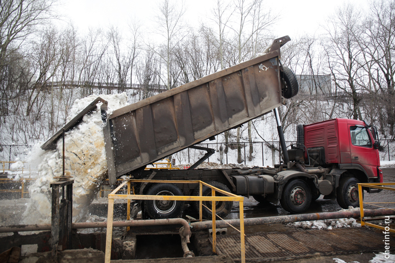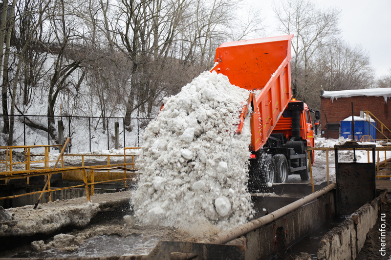 Пункты приёма снега в Череповце были открыты 18 ноября. Они расположены в двух местах: на улице Промышленной и на очистных сооружениях в Зашекснинском районе. Ежесуточно эти объекты принимают около 500 грузовых автомобилей, доставляющих снег. Для его утилизации применяются сточные воды.