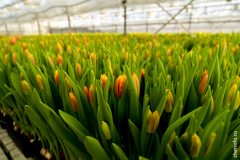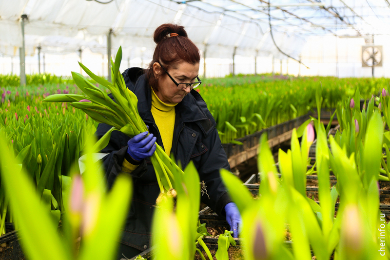 Директор предприятия Александра Ващенко пояснила: «В этом году к новому сезону вырастили больше миллиона тюльпанов. Посадили больше 30 сортов, с некоторыми из них работали впервые. Цветы выращиваем двумя способами: в торфяном грунте и на гидропонике, когда корни растений получают все питательные вещества из специального водного раствора. Из-за новых сортов было непросто, но мы вырастили много цветов для жителей Череповца и области. Будем отправлять и в другие регионы».