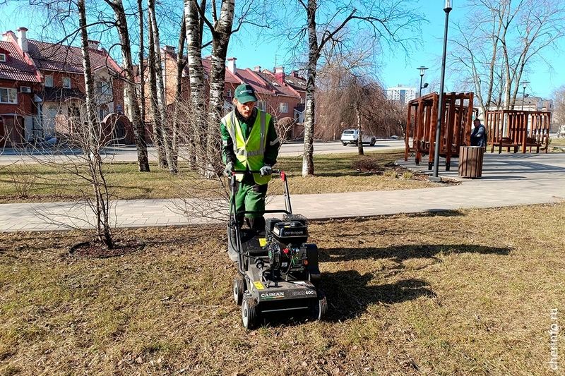 Директор «Горзеленстроя» Ирина Аппалонова пояснила: «Вычесываем старую траву, прокалываем газон, чтобы дать ему воздуха. Затем подкормим удобрениями, это нужно для развития корневой системы и роста зеленой травы. Процедура необходима после зимы. Прошлой осенью жители заметили „ржавчину“ на газоне в Бисквитном сквере, поэтому проведем обработку после вычесывания. Это профилактическая мера. Пока у нас один скарификатор, если будет нужно, купим второй. Но одного пока хватает».