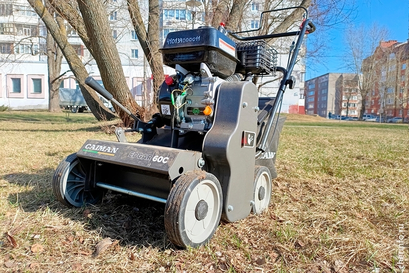 Аппарат оснащён лезвием, которое срезает отмершую растительность и прокалывает почву, обеспечивая доступ воздуха к корням.