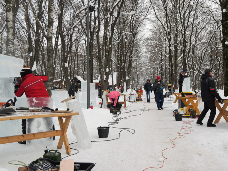 В парке Ветеранов Вологды начался фестиваль ледяных скульптур «Сердце города», где 24 мастера создают 12 композиций на тему космоса.