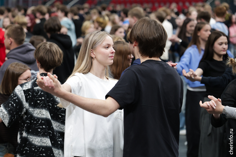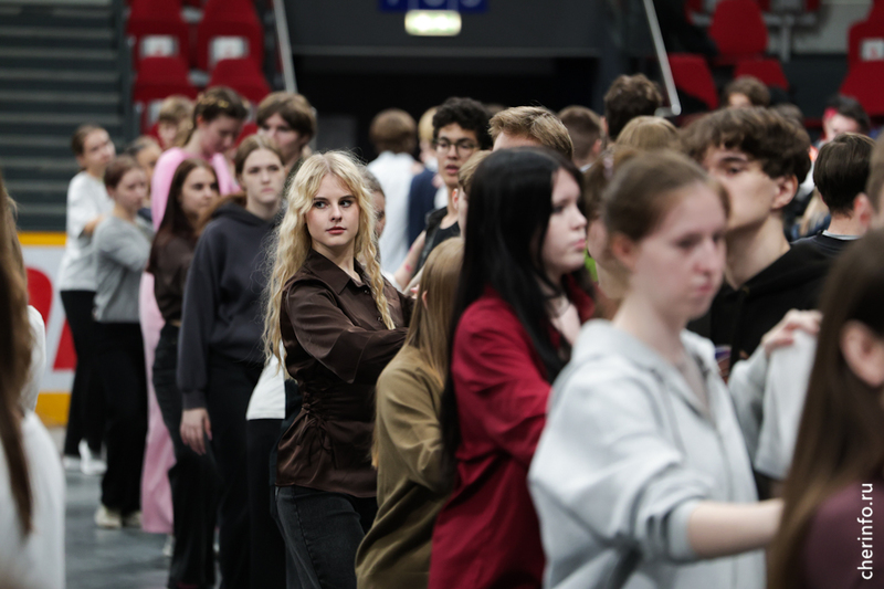 В Ледовом дворце состоялась первая общая репетиция бала выпускников. Одиннадцатиклассники из всех школ Череповца представили танцы, включая новые номера народов России.