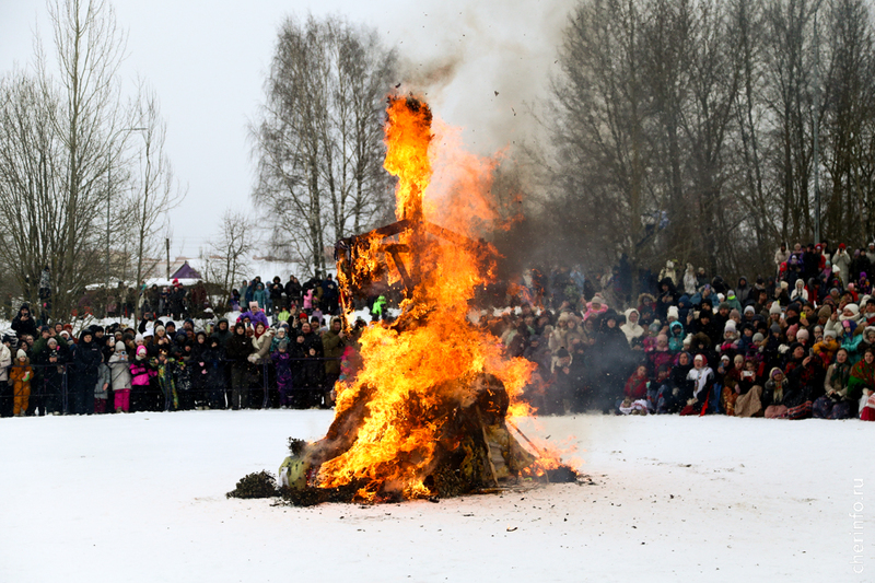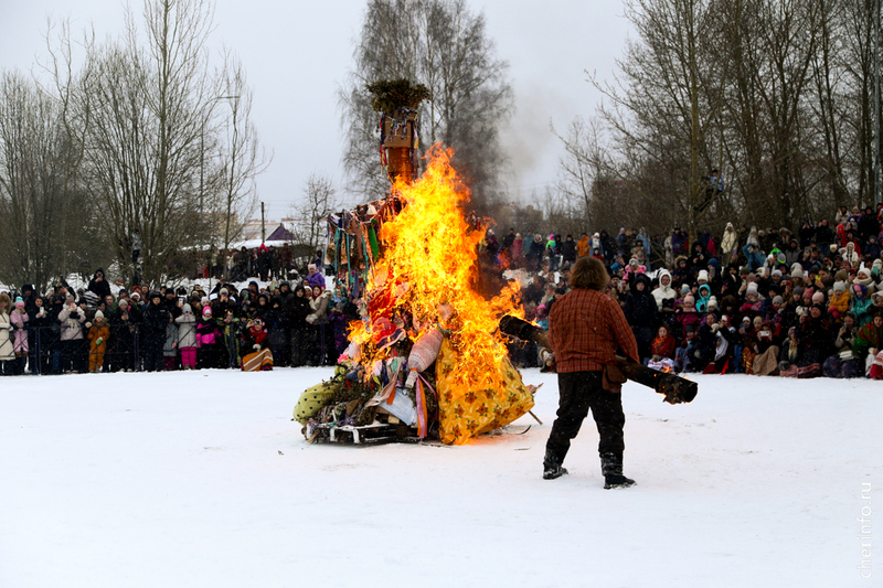 Череповец отметил Масленицу массовыми гуляниями на четырех городских площадках. Кульминацией праздника стали традиционное сожжение чучела и стеношные бои.
