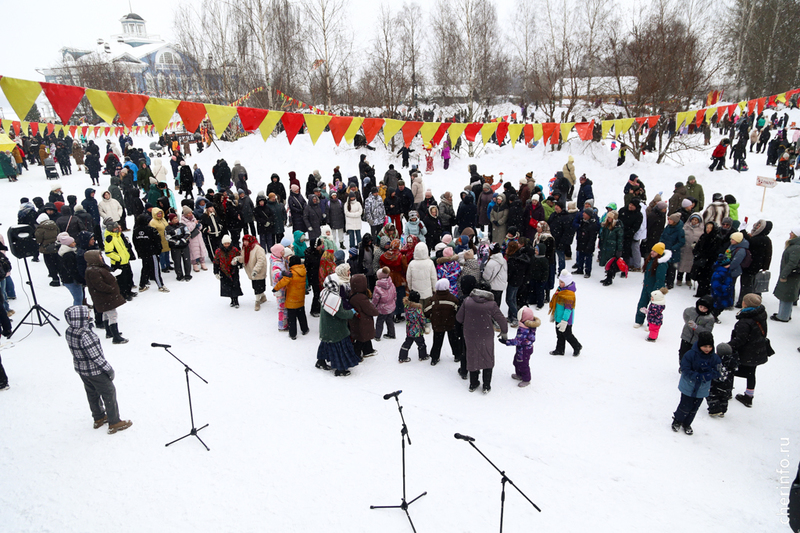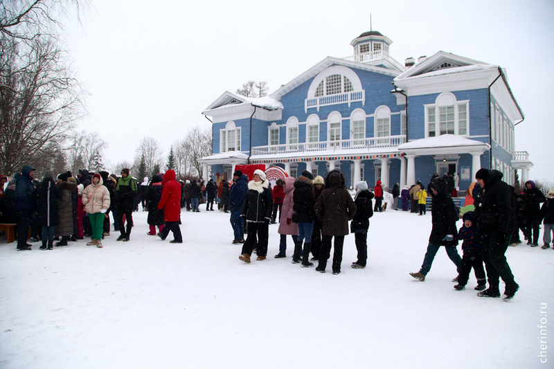 В усадьбе Гальских гости водили хороводы, перетягивали канат, участвовали в зимних забавах и дегустировали традиционные блюда — серые щи и чай из чаги. Для развлечения организовали катания на лошадях и представления кукольного театра.